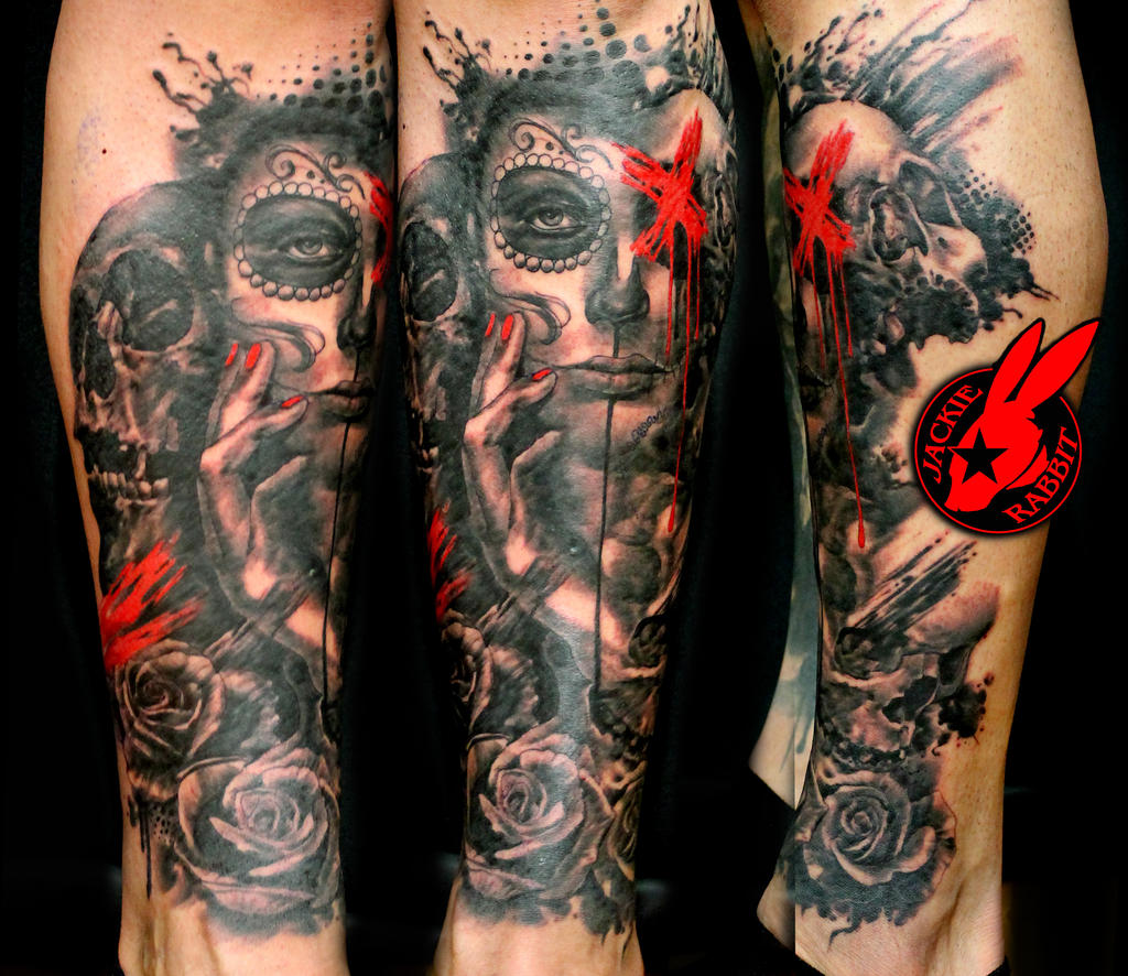 Day Of Dead Woman Skull Roses Tattoo Jackie Rabbit By Jackierabbit12 On Deviantart
